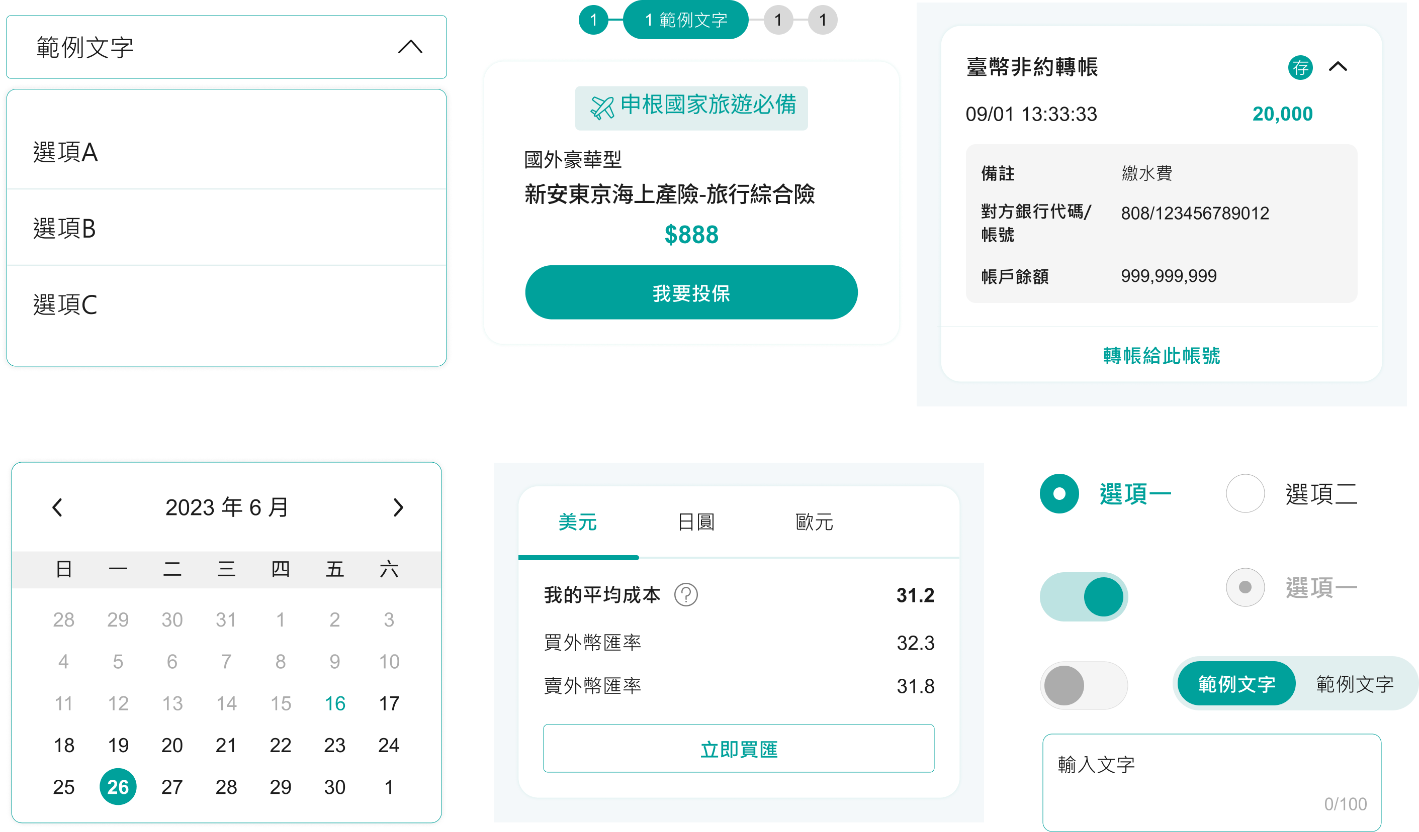 The external design system of Esun.Bank primarily serves customers; therefore, we have established certain guidelines to ensure a consistent user experience across all external interactions.